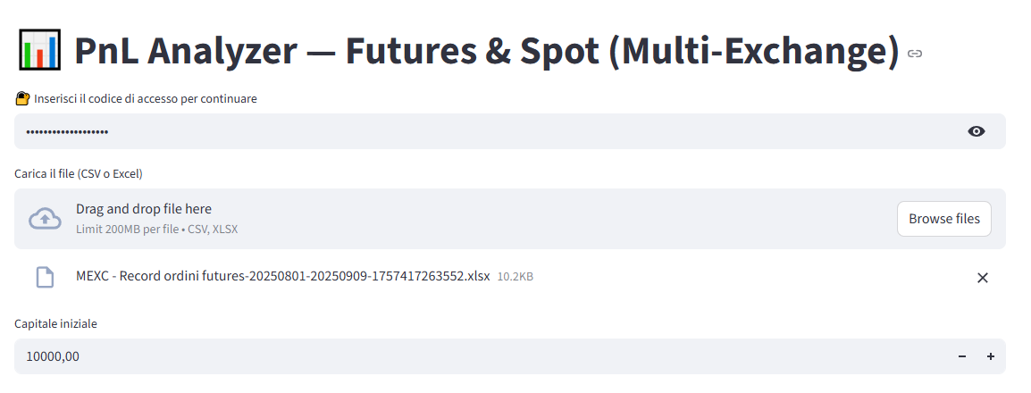 • Caricare facilmente i tuoi file CSV o Excel da Bybit, Binance, MEXC, OKX, Bitget e altri exchange.